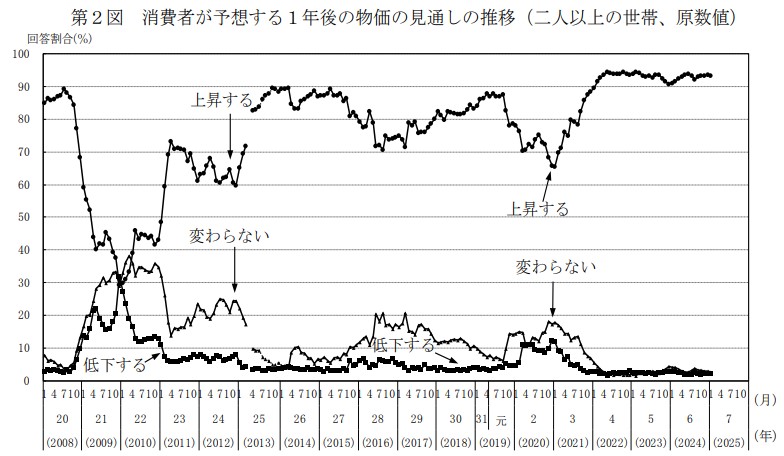 物価の見通しについては1年後の日用品の